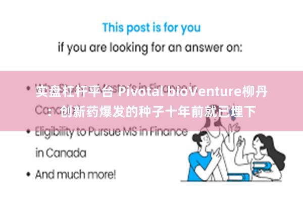 实盘杠杆平台 Pivotal bioVenture柳丹:创新药爆发的种子十年前就已埋下